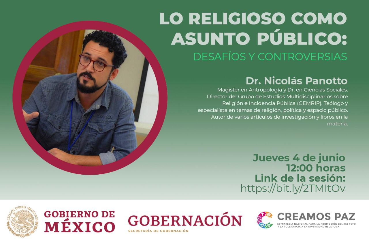 Nicolás Esteban Panotto es argentino, teólogo, doctor en Ciencias Sociales y activista por los derechos humanos. Es autor de diversos libros y artículos de investigación en los campos de religión y política, teología pública y teoría/teología poscolonial. Actualmente se desempeña como Director General de Otros Cruces, una plataforma de diálogo e incidencia que articula voces religiosas, movimientos sociales y espacios políticos en torno a debates sobre libertad religiosa, laicidad, democracia y derechos humanos en América Latina. También es profesor en la Comunidad Teológica de Chile e investigador/profesor invitado en varias universidades en América Latina, Estados Unidos y Europa.